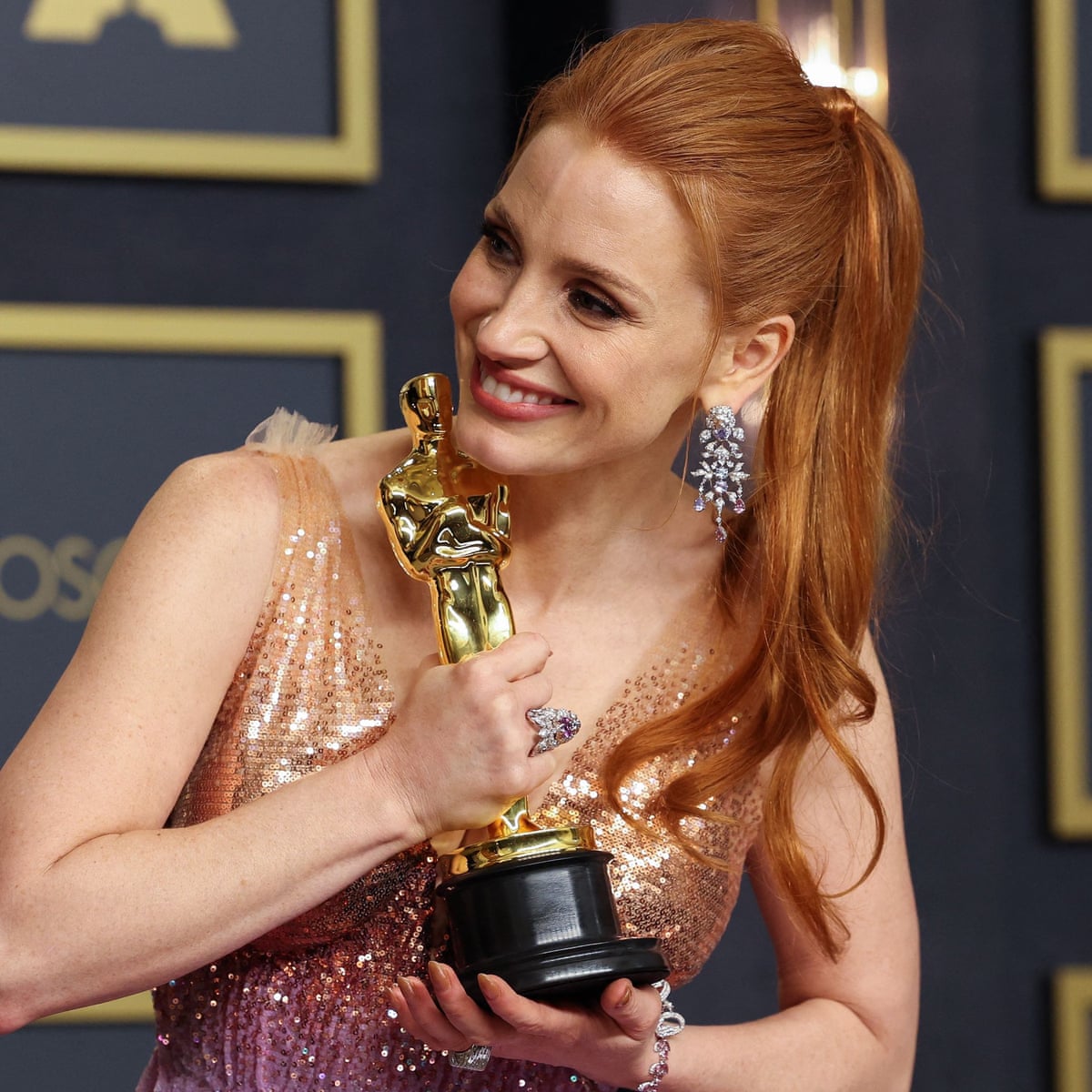 Jessica Chastain Wins Best Actress Oscar For The Eyes Of Tammy Faye Oscars 2022 The Guardian